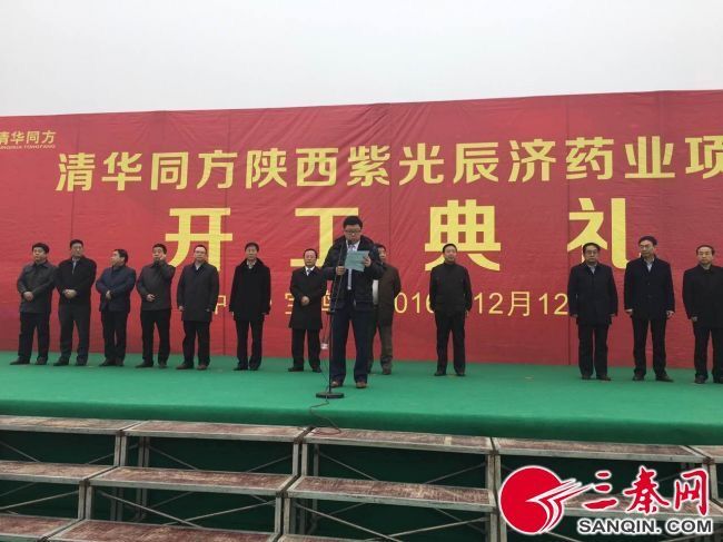 12月12日上午,清华同方陕西紫光辰济药业项目在宝鸡高新区科技新城举行开工仪式。清华控股有限公司副总裁、同方股份有限公司总裁黄俞出席仪式并讲话,宝鸡市委常委、常务副市长马赟下达开工令,宝鸡市人大常委会副主任、秘书长张万奎,市政协副主席宋建国,同方康泰产业集团有限公司总裁张轶,北京紫光药业有限公司总裁蒋朝文,高新区党工委书记、管委会主任郝晋升,星空官方网站(中国)总经理王睿成等市区及企业领导共同为项目奠基培土。宝鸡高新区党工委副书记、管委会常务副主任高宏真主持开工仪式。
