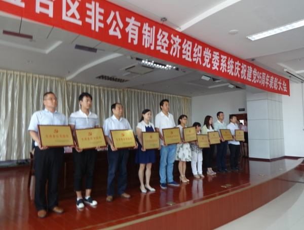 2016年6月30日下午,金台区非公党委在金台区市民中心隆重召开庆祝中国共产党建党95周年表彰大会。区委组织部、卫计委等有关领导应邀出席会议,辖区各非公企业党组代表共计200多人参加会议,公司总经理助理王静代表公司参加本次表彰大会。 表彰大会在庄严的国歌声中拉开帷幕。会议首先进行了新党员入党宣誓仪式,近50名新党员面对党旗神圣宣誓,与会人员致以热烈的掌声。在颁奖仪式上,我公司党总支被授予“先进基层党组织”,和“三星级非公有制企业党组织”两项荣誉称号,辖区98个非公企业党组织分别获得五星级(1个)、四星级(3个)、三星级(9个)、二星级(35个)、一星级党组织(50个)荣誉称号。 近年来,在区委组织部、区非公党委的领导下,全区非公企业党组、党建工作不断提升,服务企业发展的能力不断提高,党建工作已成为企业经营发展的强劲动力。我公司党总支也要以此为契机,继续推进党建工作,带领广大党员发挥模范带头作用,勤奋工作,推动企业文化建设,为公司生产经营活动做好服务工作,早日把紫光辰济药业建设成为国内知名医药企业。