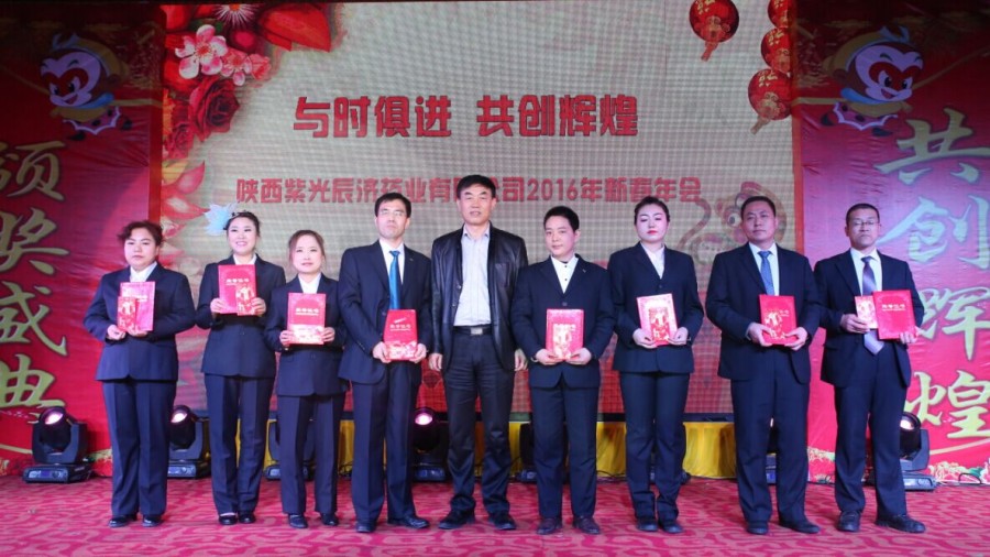 1月29日,公司在万利酒店西二楼宴会厅,举行2016年“与时俱进、共创辉煌”新春年会。清华控股高级副总裁、清华同方副董事长、深圳华融泰董事长黄俞、北京紫光制药有限公司董事长张轶、北京紫光制药有限公司总裁蒋朝文、华控赛格总裁邢春琪等领导,甘肃普尔康药业董事长刘明芳等40余位战略合作伙伴,来自公司各条战线的270余位职工和家属参加了年会。 会上,王总代表公司对各位来宾、全体同仁致新春贺辞,综合管理部经理张建华宣读了公司2015年度先进集体和个人表彰决定和2015年度质量通告。 集团领导黄总、 张总、蒋总,公司总经理王总分别给获奖人员颁奖并讲话。 活动现场,进行了精彩的职工文艺节目汇演和年会抽奖。当看到紫光辰济员工精彩的表演后,集团领导非常高兴,黄总、张总、蒋总、邢总,分别多次设立红包,现场抽奖,将晚会推向新一轮高潮。 为办好本次年会,各部门利用班中休息时间认真排练节目,综合管理部用一个月时间加班加点准备年会所需材料、物资、文案、组织节目彩排,抽调各部门人员组成现场保障组,确保了年会的成功。