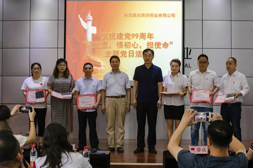 为隆重纪念中国共产党成立99周年,回顾党的光辉历程,讴歌党的丰功伟绩,中共星空官方网站(中国)党支部于2020年6月29日在公司三号会议室举办庆祝建党99周年“颂党恩 悟初心 担使命”主题党日活动。总经理王睿成、中共紫光辰济药业有限公司党支部第一书记肖红星、党支部书记王静、工会主席李继虎等60余人参加活动,特邀金台区非公党委办公室主任杨智明出席本次活动。 活动在全体党员和优秀员工的国歌声中拉开序幕,全体党员由党支部书记王静带领在鲜红的党旗下重温入党誓词。在誓言的感染下,党员同志们高举右手、握紧拳头,在鲜艳的党旗下郑重宣誓。党支部第一书记肖红星发表讲话,对一年来党建工作进行了简要回顾总结,强调在今后的党建工作中要继续提高党务工作者的政治素养,全体党员要提高政治站位,统一思想认识,加强深度融合,提升党建质量,提升企业对外形象。 活动中,公司全体中层管理干部及优秀员工分别进行宣誓,共同感悟企业文化、重申各岗位的职责,励志用自己的才华与能量服务企业,共同携手创造辰济辉煌的明天。公司总经理王睿成在讲话中强调,公司党支部的队伍在不断壮大,各位党员要充分发挥先锋模范作用,冲锋在前,勇于担当,坚持党的建设和生产运营等各项工作深度融合,努力实现党建工作与公司各项工作双促进、双提升。 本次活动还表彰了一年来为党支部和公司作出突出贡献的优秀党务工作者、优秀党员及企业文化优秀员工,组建了公司党建培训讲师团,还特别聘请金台区非公党委办公室主任杨智明为党建培训讲师,与会领导为受表彰人员颁奖。 活动最后,由我司特邀党建培训讲师杨智明主任带领党员共同学习“三会一课”制度,讲解在新的历史条件下党组织落实此项制度的重要作用及意义,希望全体党员及党务工作者能积极认真履行“三会一课”制度,加强党组织建设,提高基层党组织的战斗力。 2020年6月30日,中共星空官方网站(中国)党支部书记王静、销售支部书记张晓辉参加了宝鸡市金台区委组织部组织的“全区非公、社会组织纪念建党99周年“颂党恩 守初心 担使命”表彰暨主题党日微视频竞赛大会”,市创先争优先进基层党组织、脱贫攻坚先进基层党组织、疫情防控先进基层党组织、优秀共产党员、优秀党务工作者均参加了会议。 会上,中共星空官方网站(中国)党支部荣获“创先争优先进基层党组织”、“主题党日微视频竞赛组织奖”、销售支部书记张晓辉同志荣获“优秀党务工作者”荣誉称号。 今后,在集团党委的支持下,中共星空官方网站(中国)党支部将继续保持谦虚谨慎、不骄不躁的作风,以更加坚定的信念、更加务实的作风、更加振奋的精神,抢抓机遇,迎难而上,再创佳绩。