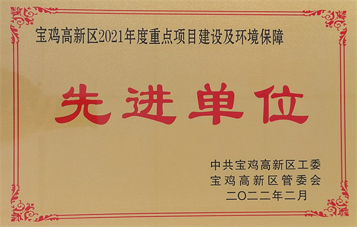 星空官方网站(中国)荣获“宝鸡高新区2021年度重点项目建设及环境保障先进单位” |