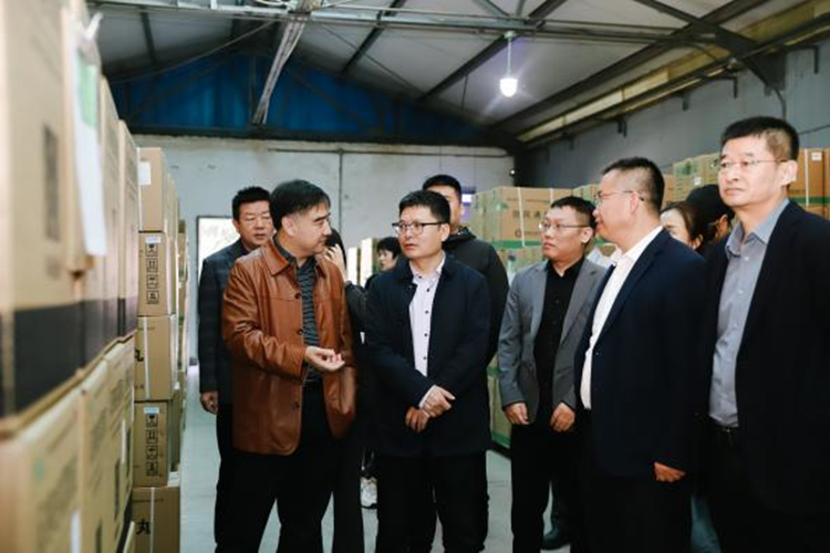 在公司县功生产基地,公司副总经理李继虎向调研组介绍了企业基本情况和现有生产流程、经营现状等,并参观了公司产成品库房,结合公司品种对调研组提出的相关问题进行了细致的回答讲解。