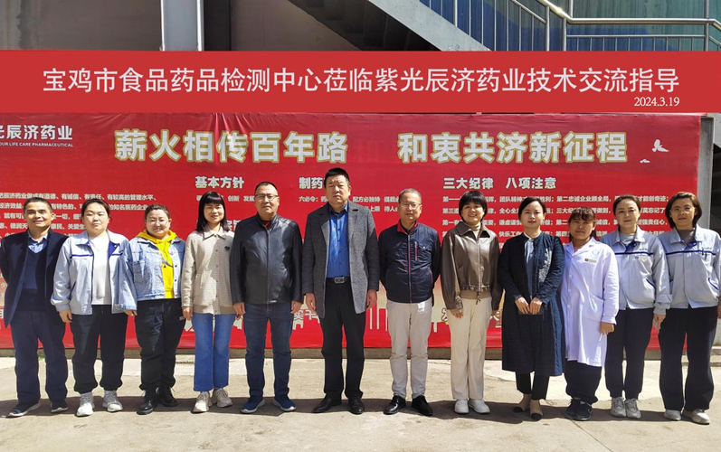 2024年3月19日,宝鸡市食品药品检测中心专家莅临紫光辰济药业公司(县功)生产基地,进行了一场卓有成效的技术交流指导活动。此次活动旨在加强公司与权威检测机构的合作,提升公司的产品质量和技术水平。