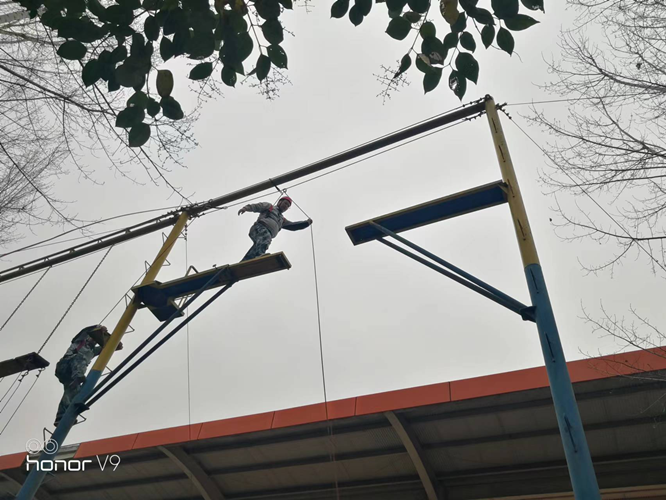 “智慧汉诺塔”活动中团队群策群力 “高空断桥”是一个具有挑战性,最锻炼个人自信,激发潜能的拓展项目之一,为所有成员提供一个既定的目标,并在这个目标达成过程中设置一系列包括生理和情感上的障碍,通过在达成目标的过程中,带给大家深刻感受,从中体会到目标实现过程中的勇气、方案和风险承担的必要和重要。